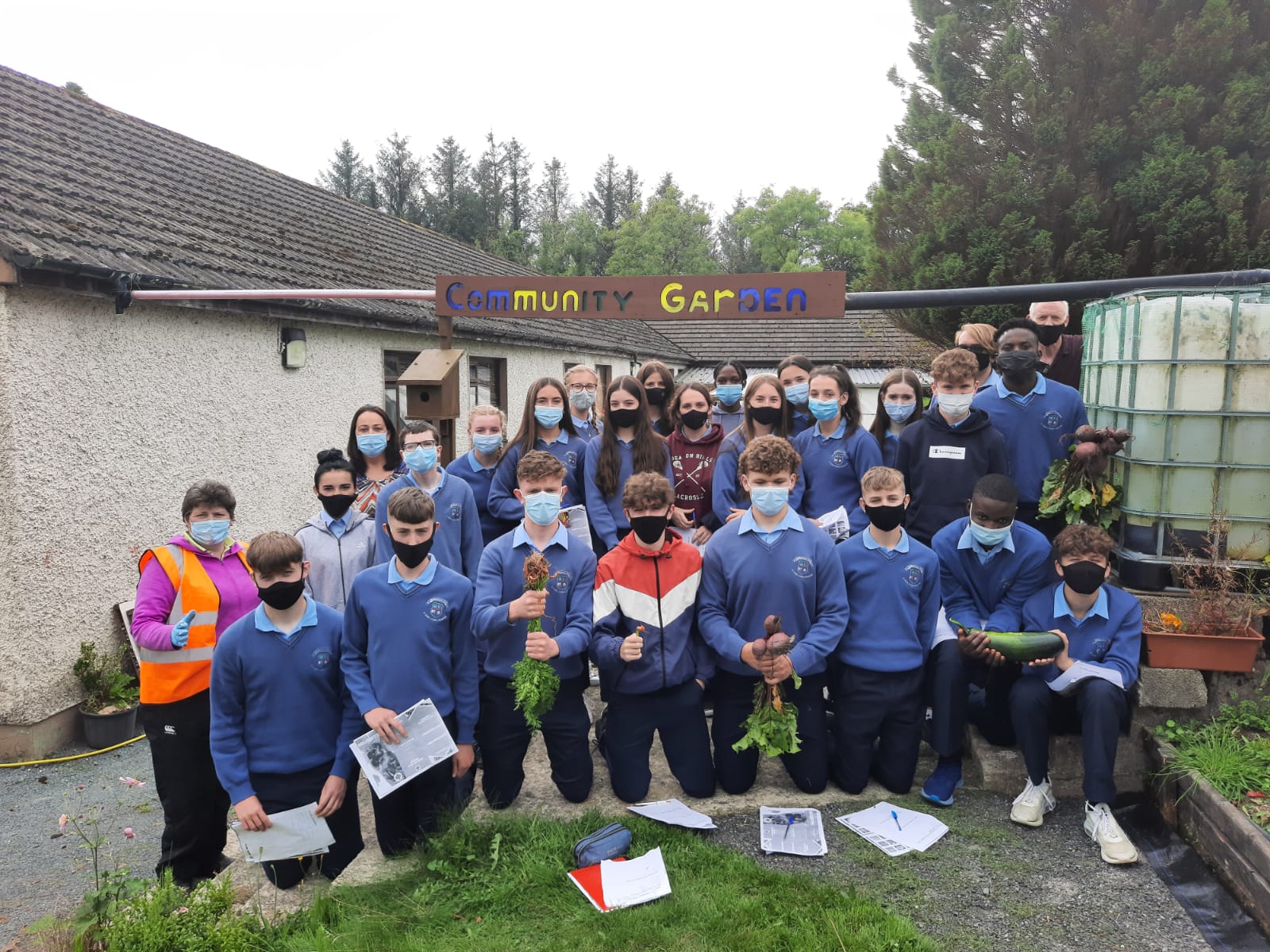 On Wednesday 1st September Ms. Colum and the TY class visited the local Community Garden in Ballinamore. Students had the opportunity to see many vegetables such as beetroot, potatoes, cabbage, courgette, carrots and also many fruits such as raspberries, pears, strawberries, apples, rhubarb and blackcurrants being grown. In one polytunnel that students visited, grapes and a fig tree were growing. Students learned about growing in polytunnels, raised beds and the importance of companion gardening. Students learned about how pests are controlled and the importance of being sustainable. Kay Maguire and Darren Warren provided students with plenty of very useful information on the history of the Community garden to the day to day running of keep the community garden sustainable
