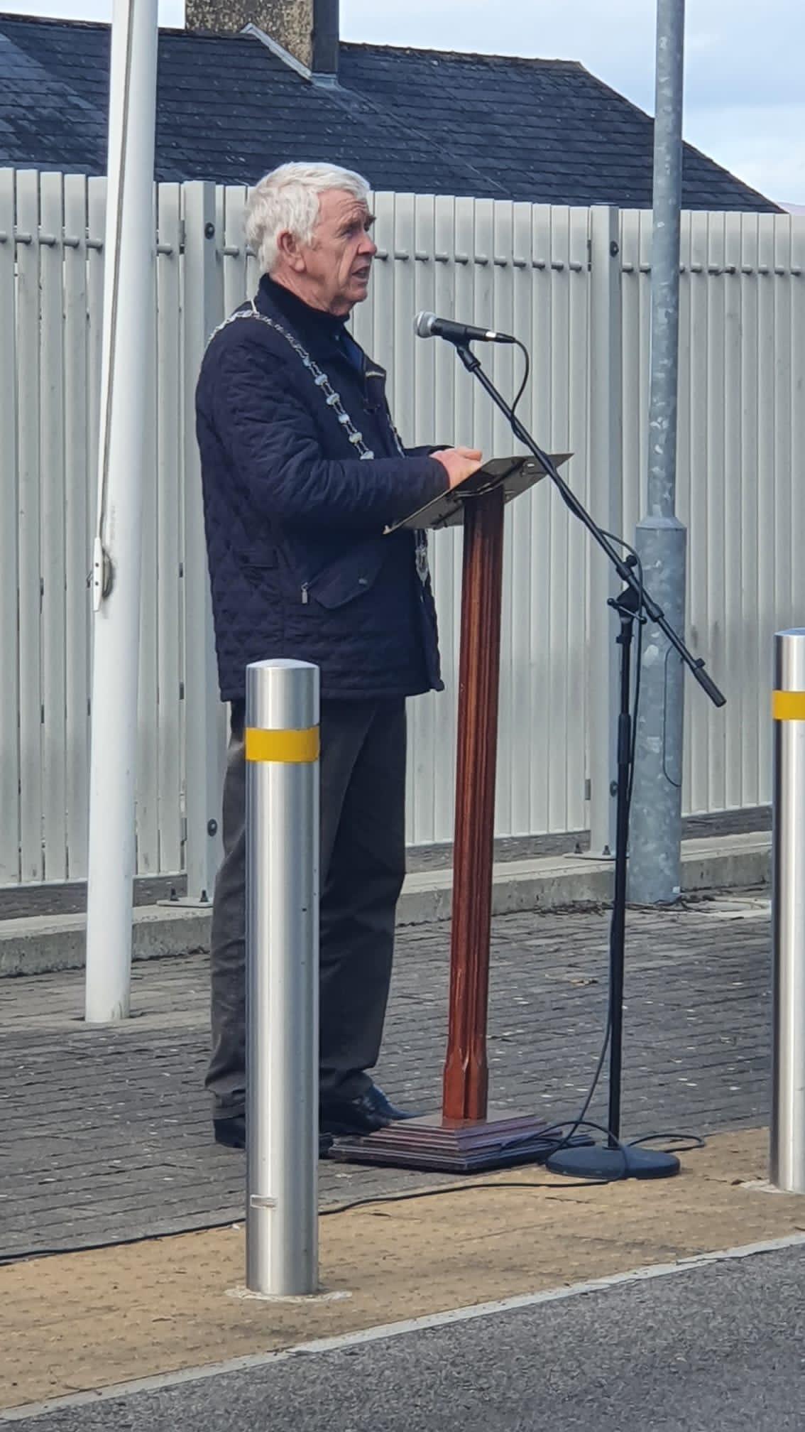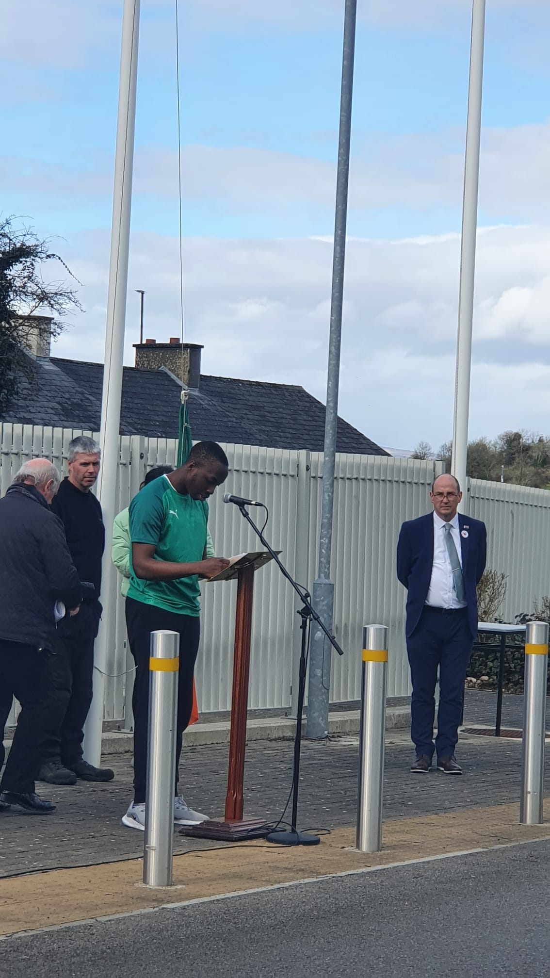 Students in Junior classes made flags on A4 pages representing Nationalities in our school. Our Principal, Mr McCaffrey presided over the flag raising ceremony which took place in front of the school, with all students and staff in attendance. There were speeches made by Mr.McCaffrey, Paddy O Rourke (Chairperson/Mayor of Leitrim County Council) and Mr Mullen, who represented the History Department in our school.