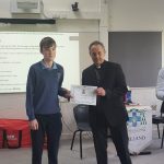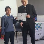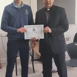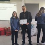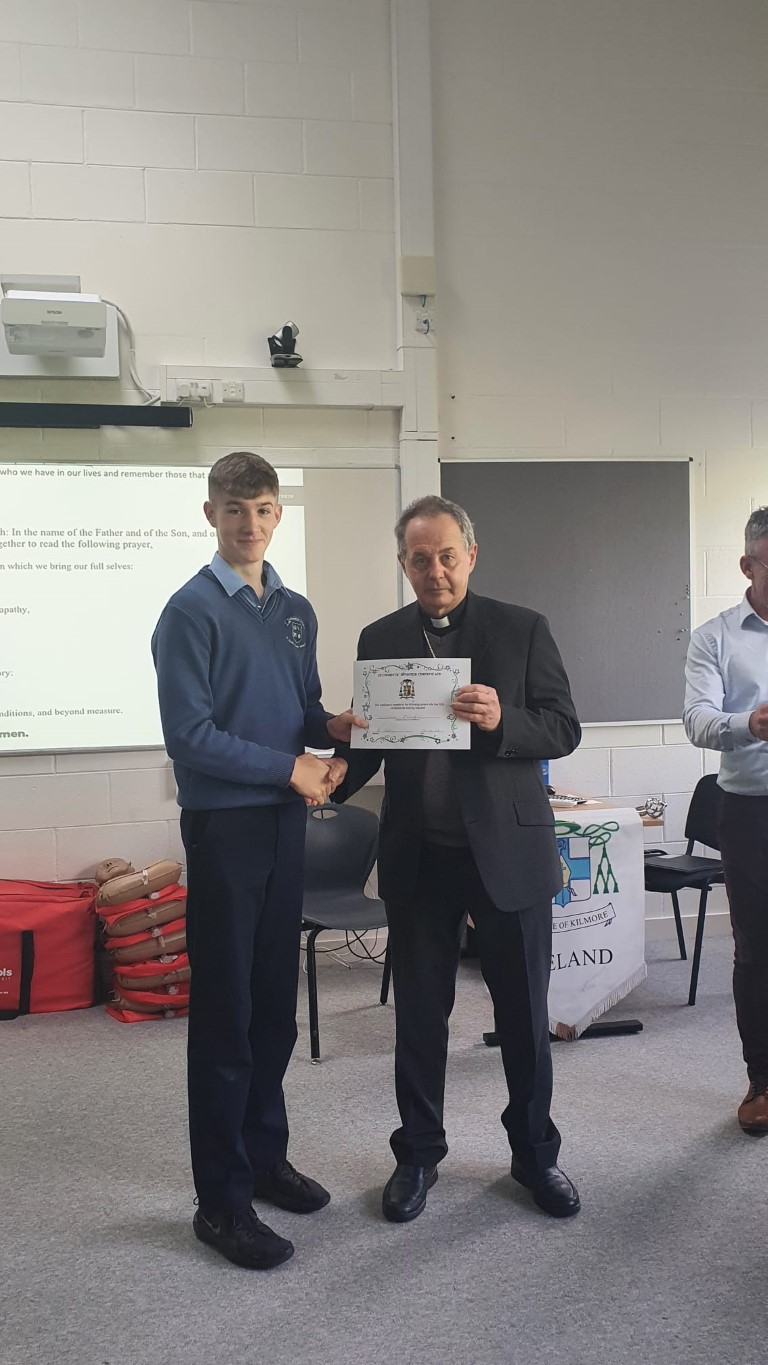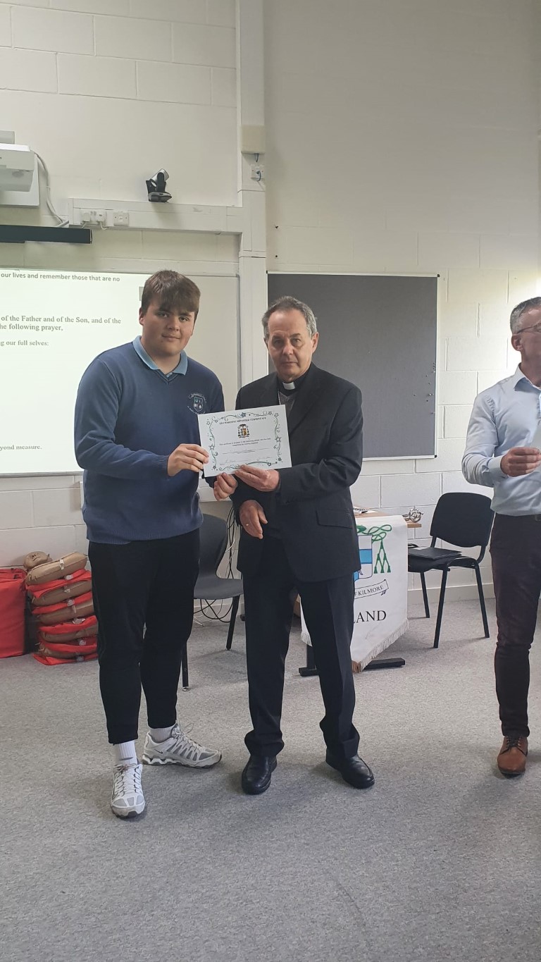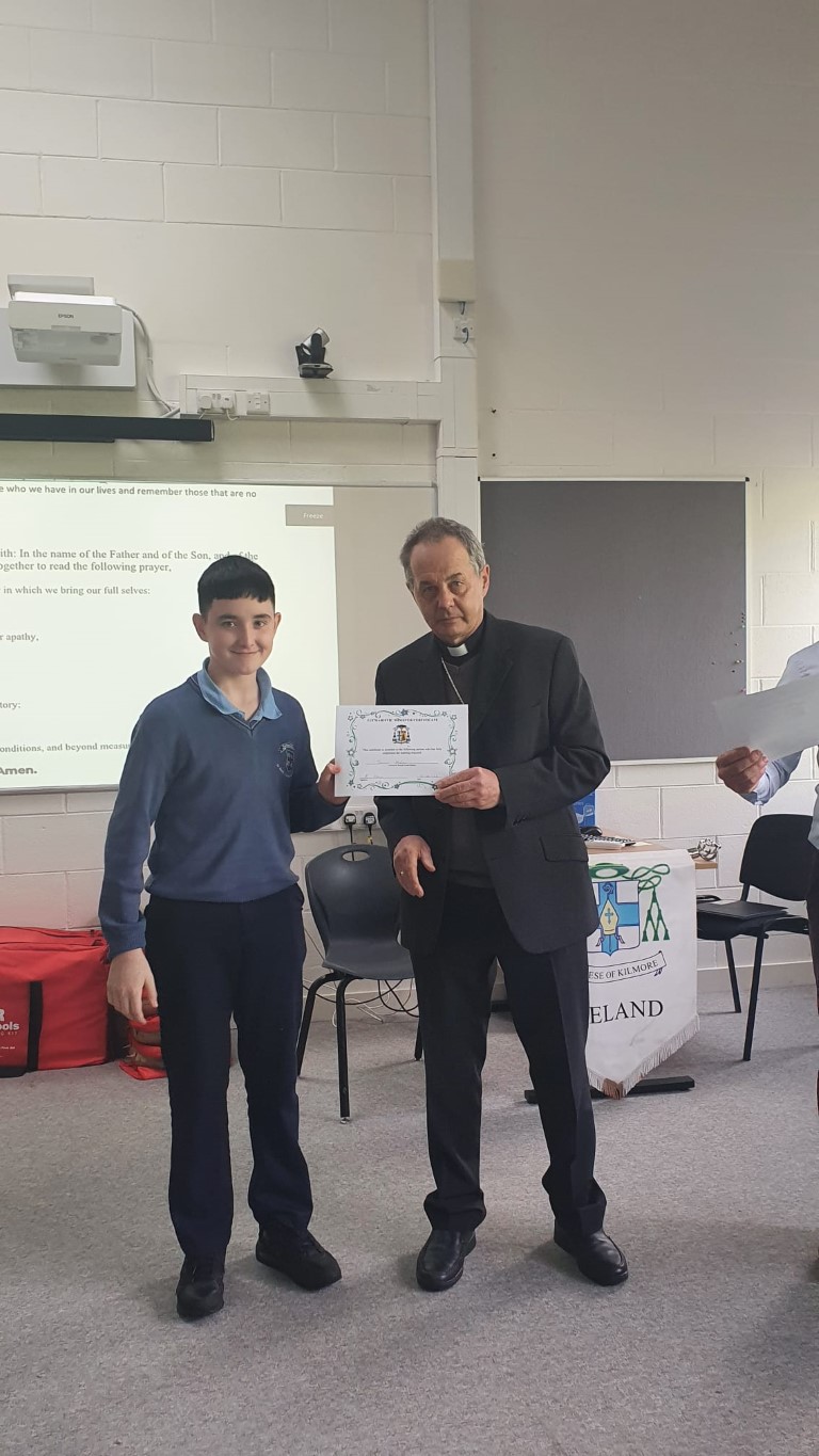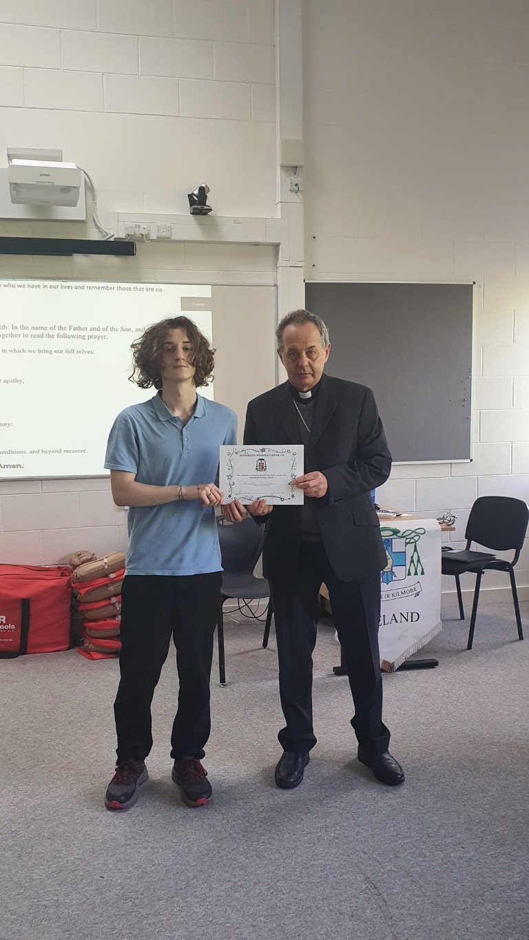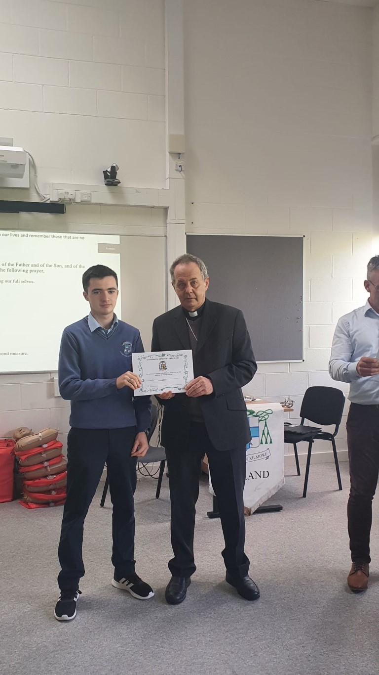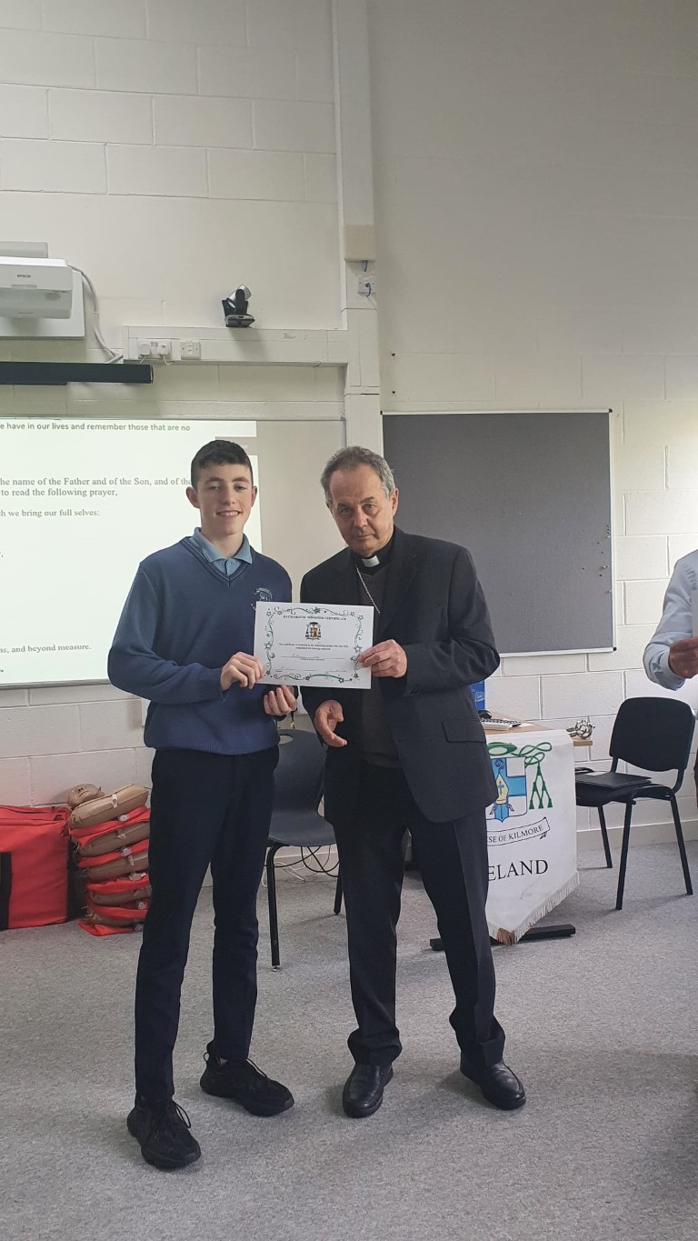 Following a prayer service Bishop Martin Hayes also presented the TY students who had recently completed Eucharistic Minister Training with their Certificates. He also planted some bulbs in our school garden. Thank you to our school Chaplian Mr Kane for organising the visit.