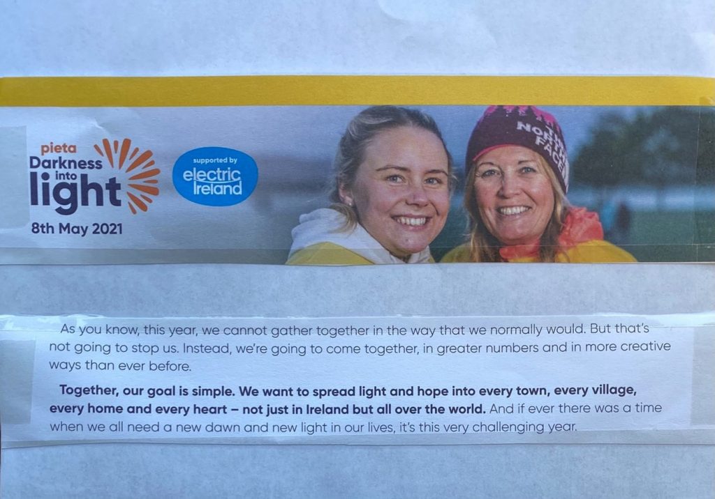 Unfortunately, Darkness into Light 2020 had to be cancelled due to Covid-19 restrictions.
